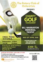 The Rotary Club Of Oxford Isis are hosting TheBill Warburton Memorial Trophy Charity Golf Day. The event is a 4 Ball Texas Scramble with prizes. Entry cost per team is £300 which includes breakfast and lunch.