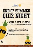 Rotary Club River Great Ouse Quiz Night to be held at the Three Cups Newnham Street in support of Everyone's Gang.Members who wish to participate please contact Rtn Tony asap.