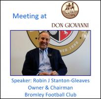 Speaker: Robin Stanton-Gleaves - Owner & Chairman Bromley Football ClubWed 10th September 2025 Dinner meeting at Don Giovanni's