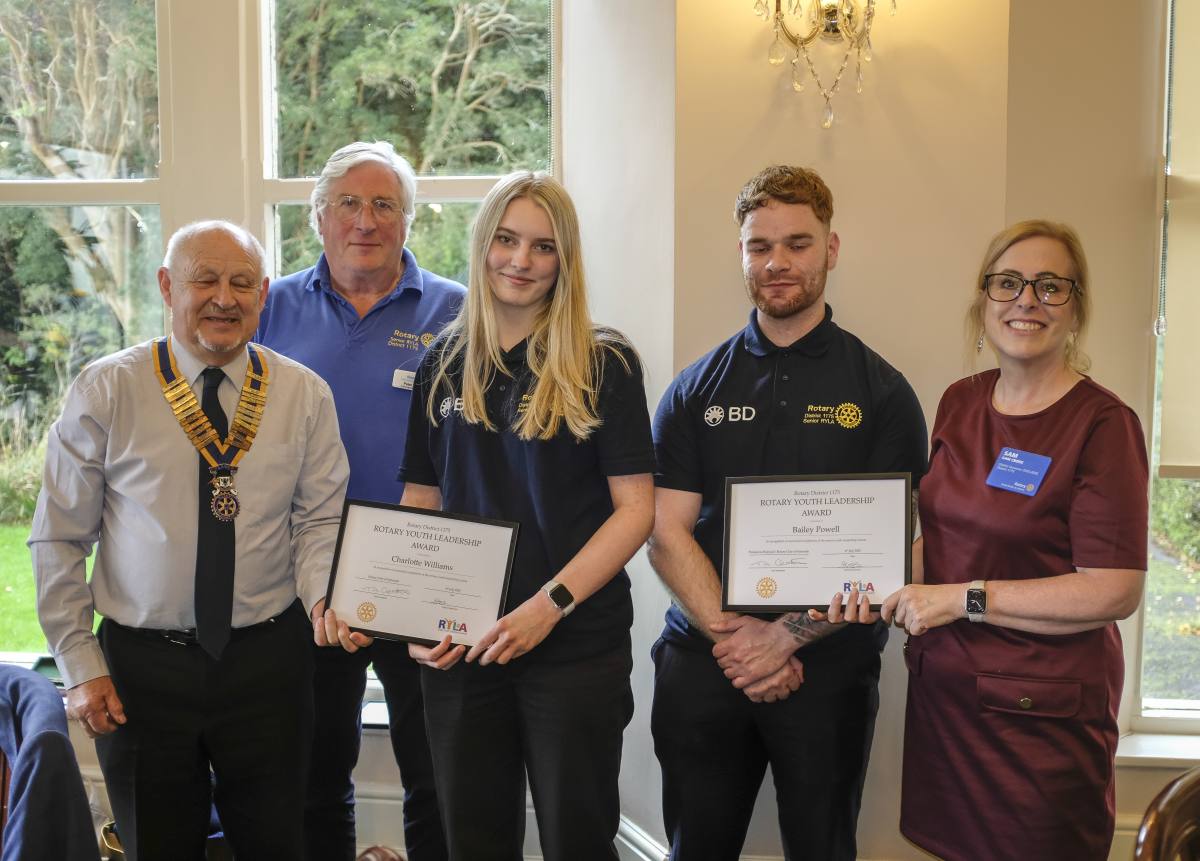 Charlotte Williams and Bailey Powell graduate from the Rotary Youth Leaders Awards in Falmouth. Presentation of the RYLA certificates at the Falmouth Rotary Club in October.