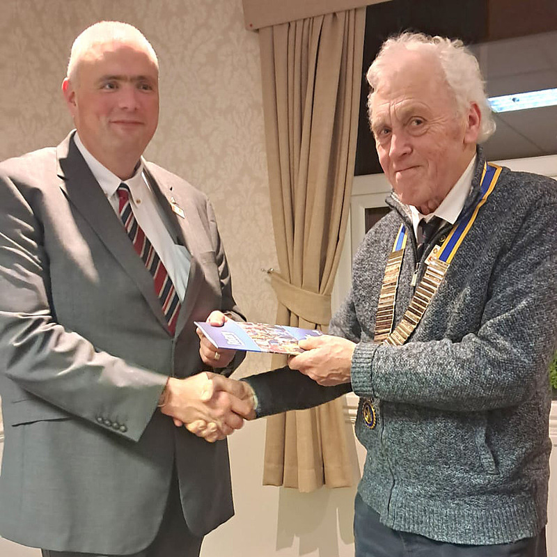 Prestatyn Rotary Club meet every Monday (6:30) except Bank Hols. at The Beaches Hotel Prestatyn. So the gathered Rotarians were delighted to witness President Colum giving two further cheques at the meeting.