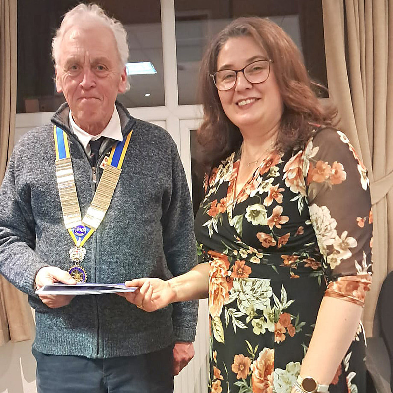 Rotary President Colum Phillips visited Aimee’s Art Group who currently meet at Kings Hall Community Centre in Prestatyn. He was delighted to present a cheque for £500 to Aimee Renee Colville, founder of the group. Aimee is a Community Artist, Wellbeing Champion and Dementia Friend.