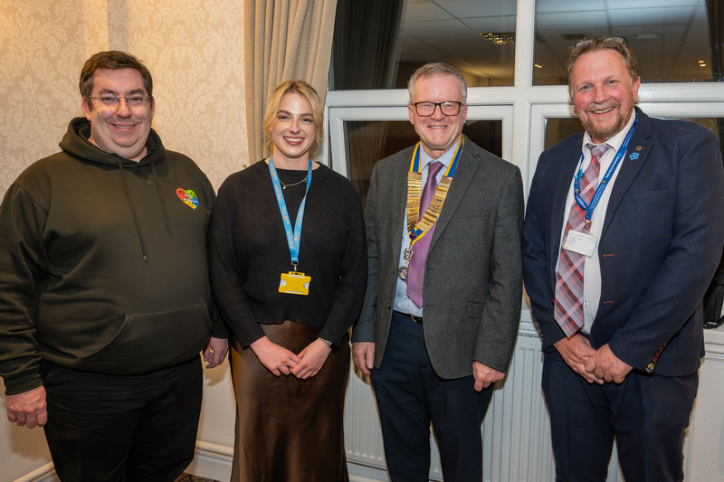 PHOTO Left to Right:- Toby Fagan (Work in Progress), Sian Golding (Ty Gobaith), Rotary President Huw Ellis-Williams, Andrew Hall (Alzheimer’s Society Wales)
