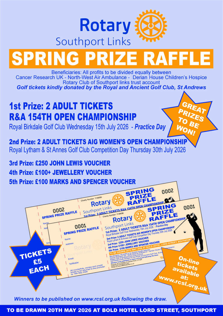 Help support our club by joining the Rotary Club of Southport Links 100 Club - Win up to £100 every month - Click the image above for more details.