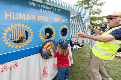 Our popular and original Human Fruit Machine was in action again at Haddenham Fete to the great delight and excitement of fascinated players, 'front of house' and the brave Rotarians who operated the machine's complex mechanism