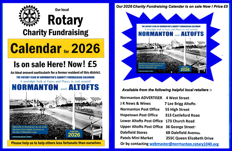 The Rotary Club of Normanton received its Charter in 1942. Our club is a group of friends from a wide range of different backgrounds, who follow the Rotary "motto of "Service Above Self" and derive pleasure from assisting like-minded people to improve the lives of many, less fortunate than ourselves.