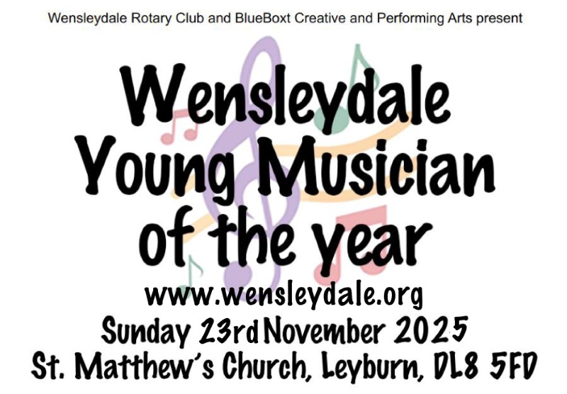 As part of the Rotary National Young Musician of Year competition, Wensleydale Rotary Club together with BlueBoxt Creative and Performing Arts in Leyburn is holding the Wensleydale Area heat of the competition held on the 23rd November