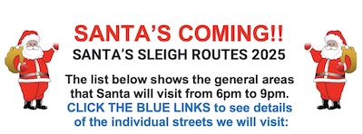 Thank you to everyone who gave donations during Santa's 2020 street tours and through the Just Giving and Text donation sites. For the past few years we have collected over £12000 which has been passed on to good causes. This year we could not have our usual house or supermarket collections but are grateful for those who contributed about £3700, which will go to local good causes.