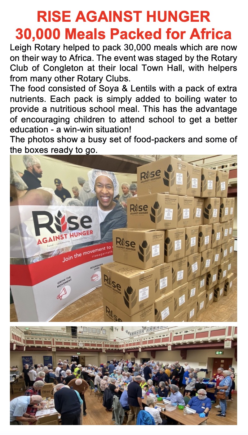 We would be delighted if any community group is willing to help us with this year’s Santa collection, as we continue to raise funds for future donations to good causes. We are always looking for enthusiastic people who are keen to help support the local community and would like to join us in our work, either as a helper or a member. For further information contact our secretary Brian Mills, at leighrotaryclub@gmail.com