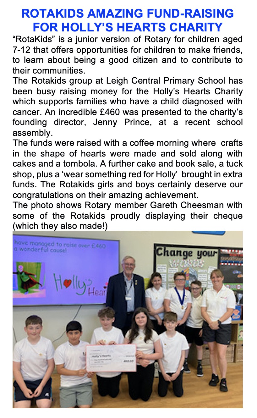 RotaKids is a junior version of Rotary for children 7 to 12 years old and we have a RotaKids group, attached to Leigh Central Primary.