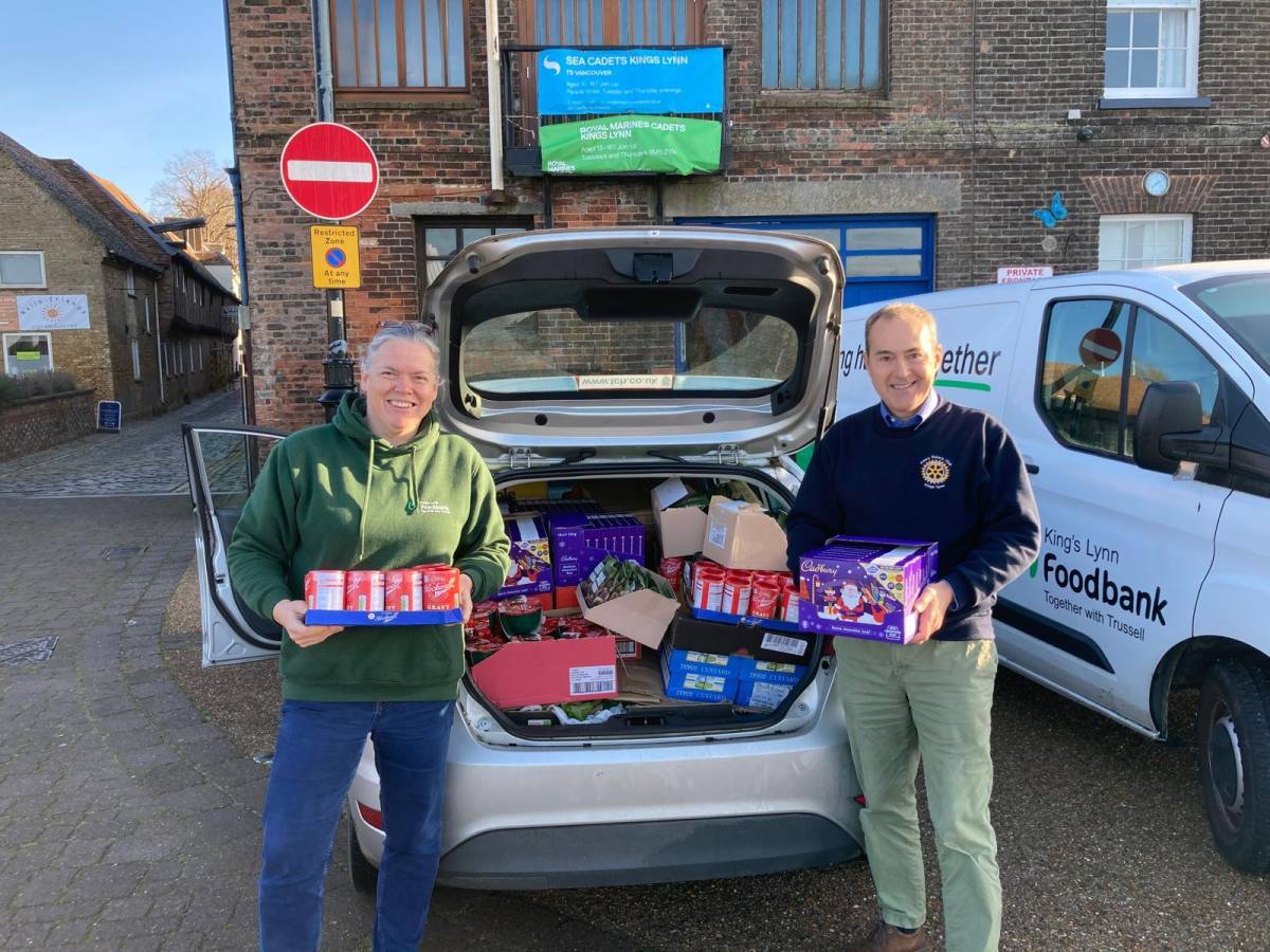 In a joint venture between King’s Lynn’s Priory Rotary Club and its Satellite Club, a large consignment of Christmas items has been delivered to King’s Lynn’s Food Bank on the South Quay. Spearheaded by Satellite Club member, Rob Colwell, it followed an earlier donation of over 100 blankets to help people keep warm as they faced falling temperatures and rising fuel prices. Mark Collins, Satellite Club leader said: “With support from some of the local supermarkets we were able to provide enough to make up 50 packs containing everything from sage and onion stuffing to Christmas puddings and mince pies. We hope these will help make Christmas a bit more special for those who are finding it hard to pay for essential items, let alone anything extra.”