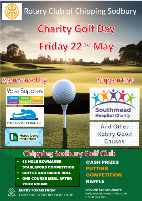(on the 1st and 3rd Monday of each month Summer meetings: 7.00pm for 7.30pm) Chipping Sodbury Golf Club Trinity LaneBe part of a global network of volunteers, trying to make the world a better place. Please also see the 'links & news' page for information from the local district and live feeds from Rotary International and Rotary International in GB&I.
