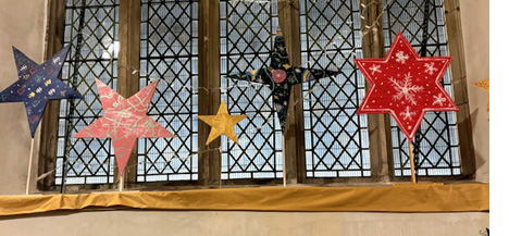 Constructed by Rotarian Tom Price and decorated by the RotaKids of Y Bont Faen Primary School, these beautiful stars are part of the Christmas decorations of Holy Cross Church.