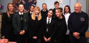 Club Member and Interact Liaison Donald Cameron (extreme right) recently visited Arbroath High School's Interact Club and was welcomed by School Interact Liaison Lois Winter (extreme left). The Club has a very busy programme of events.