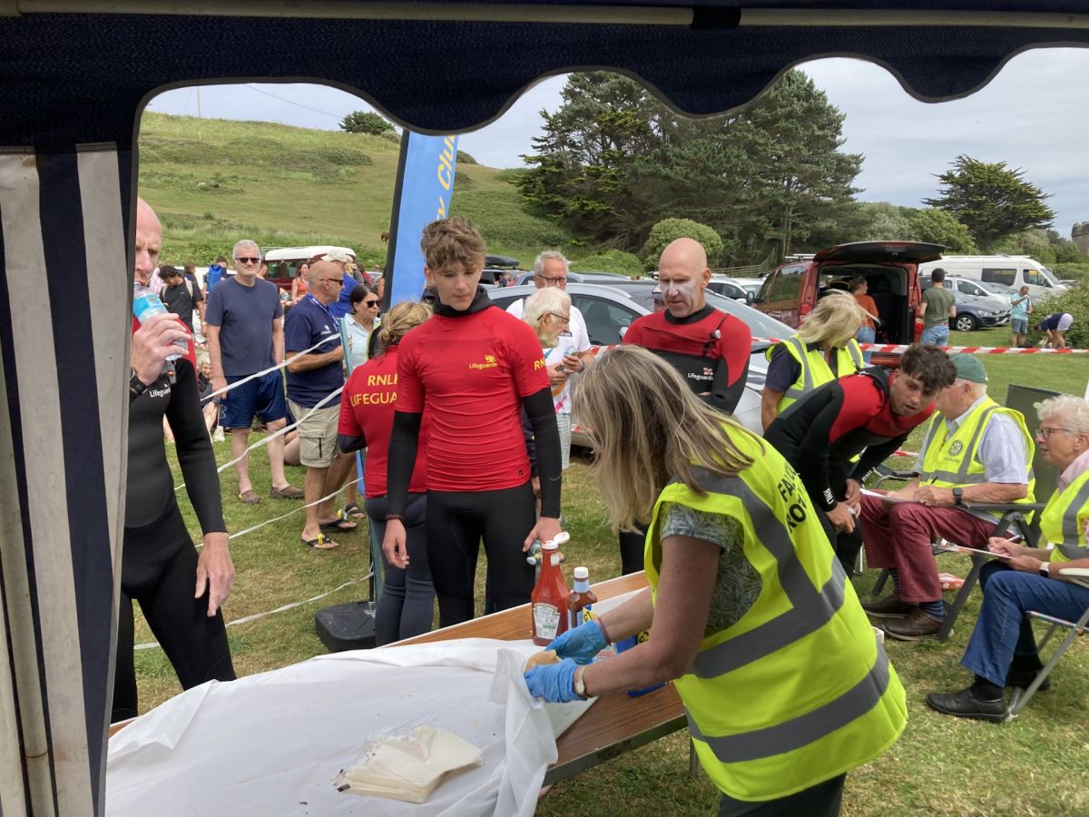 Falmouth Rotarians fed swimmers and RNLI volunteers at the RNLI Castle 2 Castle swim on Sunday 22nd June. Bacon and sausage baps, tea and coffees were greatly received, and all proceeds will go to the Falmouth Rotary local charities. This annual one-mile swim from Pendennis Castle to St Mawes Castle takes place on the Roseland Peninsula. This year 552 participants took part and raised over £100,000 for the RNLI.