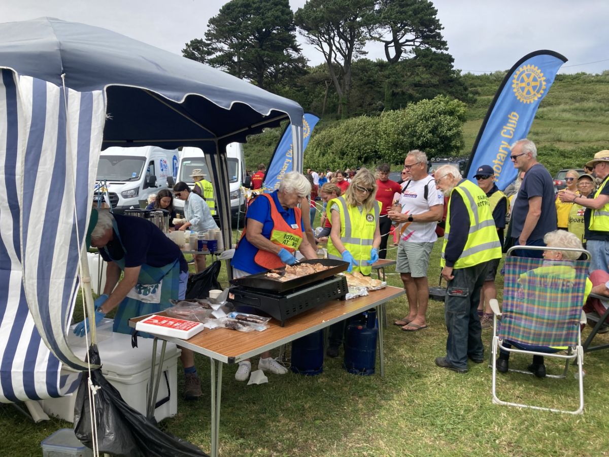 Every June, Falmouth Rotary volunteers cater at the famous RNLI Castle-to-Castle swim event. Rotarians serve up hot sausages and bacon with tea and coffee to hundreds of hungry helpers and swimmers in the shadow of St Mawes Castle. Hundreds of swimmers take part each year.