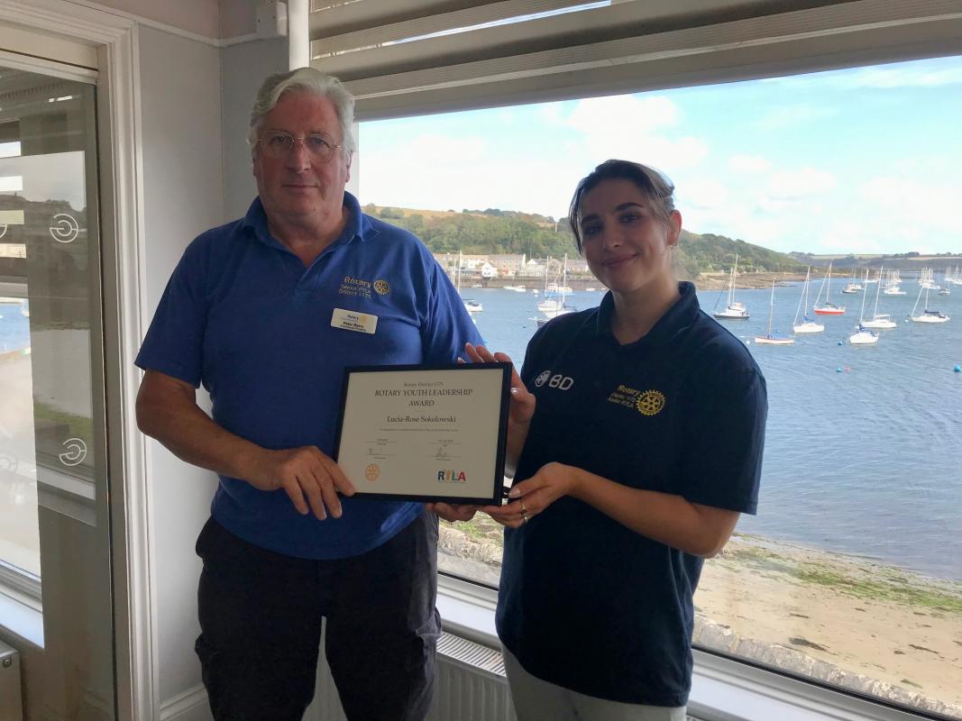 The Rotary club of Falmouth has been involved in RYLA for around 20 years. Each year graduates of the Rotary Youth Leadership Awards are presented with their certificates at the meeting of Falmouth Rotary Club.