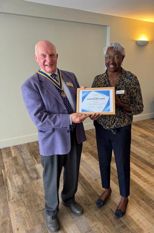 We were delighted to be presented with a Club Excellence Award for 2024-25 by Pam Cox in her new role as Assistant Governor, who attended on behalf of Immediate Past District Governor Tony Williams.