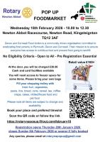 moreThe third Pop Up Supermarket is to be staged at the Racecourse aimed at redistributing food that would otherwise been discarded - organised by Newton Abbot Rotarian Nick Richards PHF