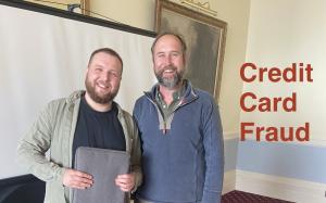 more Photographed alongside his father, Rotarian Jon Matthews, speaker Kern Matthews delivered an insightful talk on the evolving landscape of credit card fraud and how consumers can protect themselves.