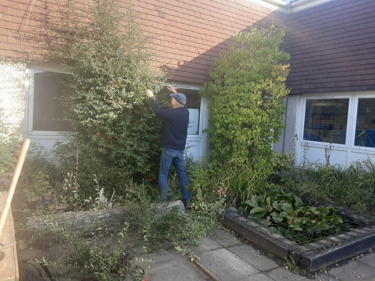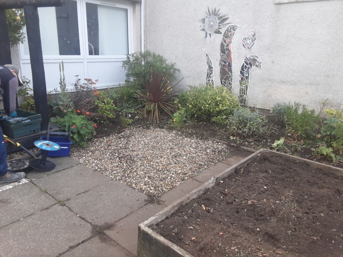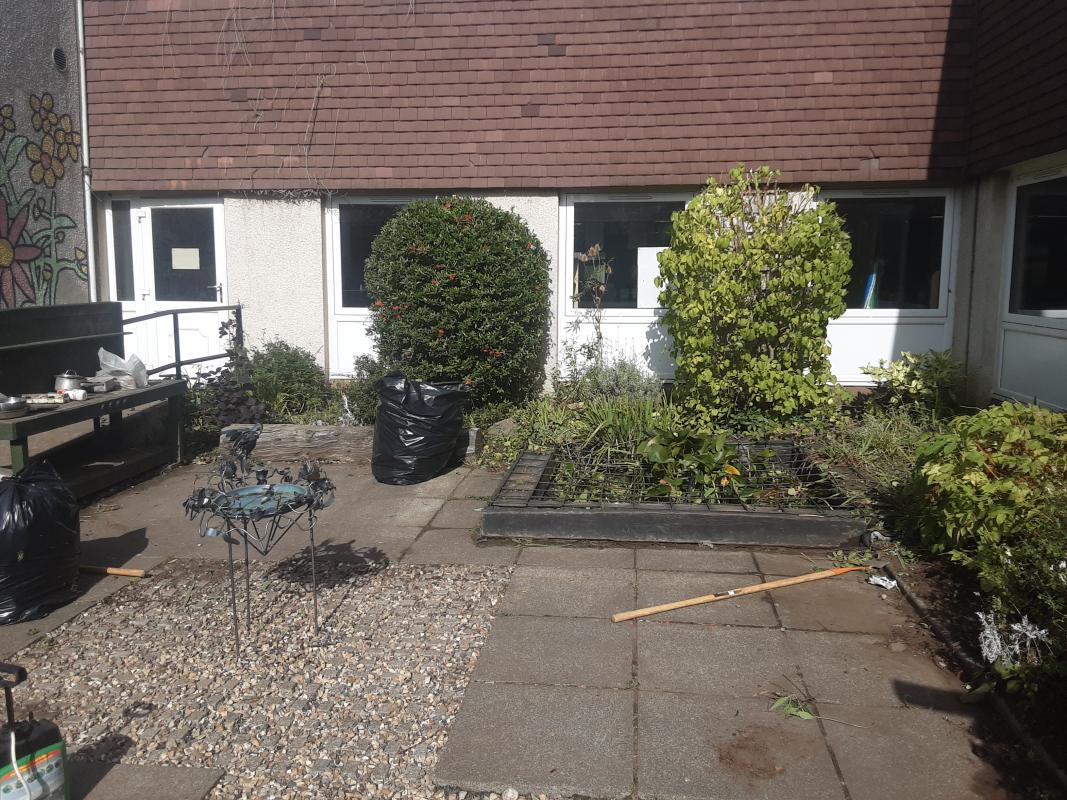The Echline Primary School Memorial garden had become rather untidy and overgrown over the summer months. So a small environmental team comprising Neil, Brian and Matt recently got stuck in and completed a great tidy up of the garden over a morning trimming shrubs , weeding and sorting out the gravel that had become scattered about. The new Head Teacher Victoria Fair was delighted with the outcome and confirmed that the garden is still being very well used by the children and a number of youngsters with additional support needs particularly enjoy spending time in the garden." The "before and after" photos show the nature of the work undertaken which filled three large sacks of vegetation.