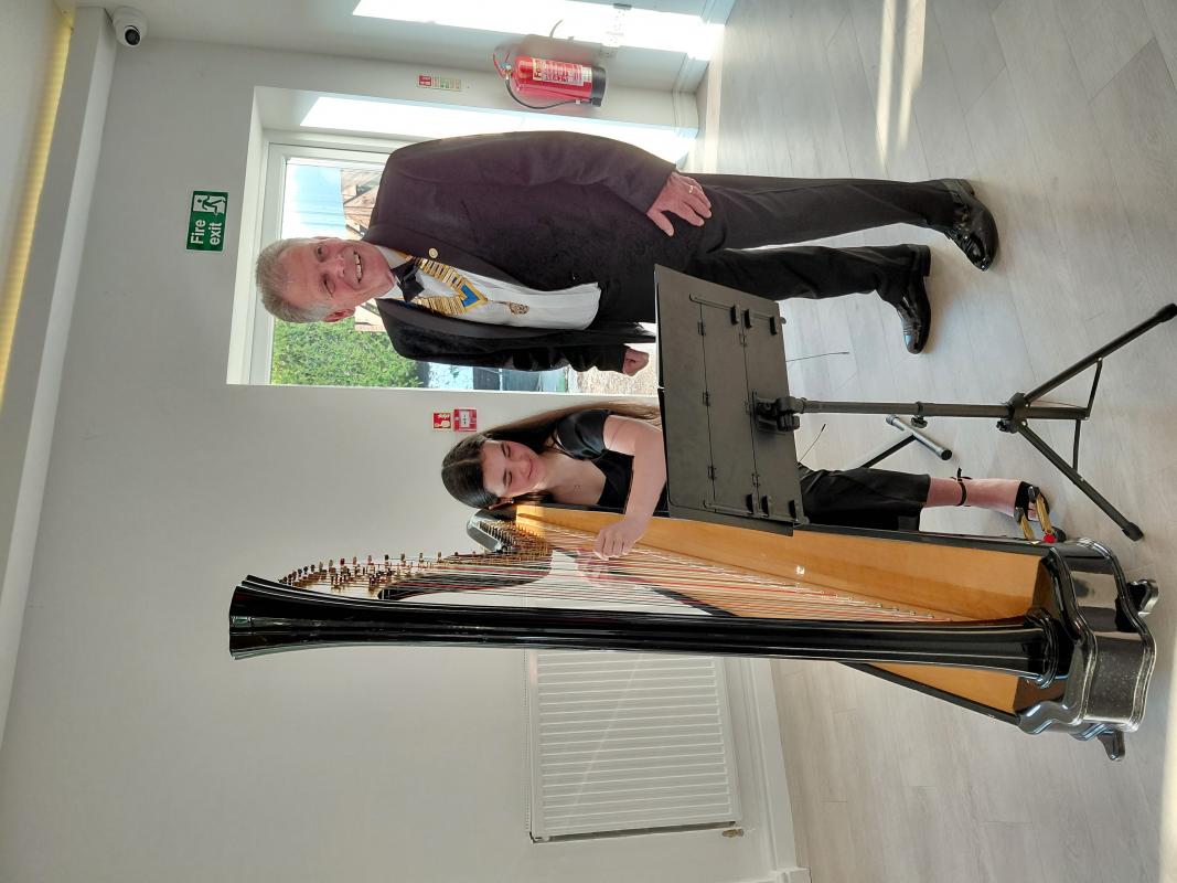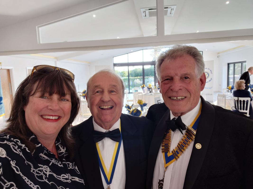 Sixty five people, comprised of Rotarians from Rhyl Club and other clubs in the district and guests celebrated our 99th Charter with a dinner at the White House Hotel in Rhuallt. During and after the meal we were entertained by an accomplished 14 year old harpist. After the meal the guest speaker, Paul Maelor gave a witty and entertaining talk about his life as a musician and composer. Among his many claims to fame he composed the music for the wedding of Prince William and Catherine. The response was proposed by District Governor Rotarian Beth Murray. She then presented Tracey Phillips with a well earned Paul Harris Fellowship for her outstanding work as social secretary. She also presented a PHF Sapphire award to Professor Chris Smith for his work as cl ub treasurer during a difficult changeover of banks. Several long service awards were also given to our longer serving members. A raffle on the night raised over £480 which will be split between President John Dicks's nominated charites, Rhyl Samaritans and Marie Curie Nurses. An excellent night to cap off an excellent year for Pres09dent John.