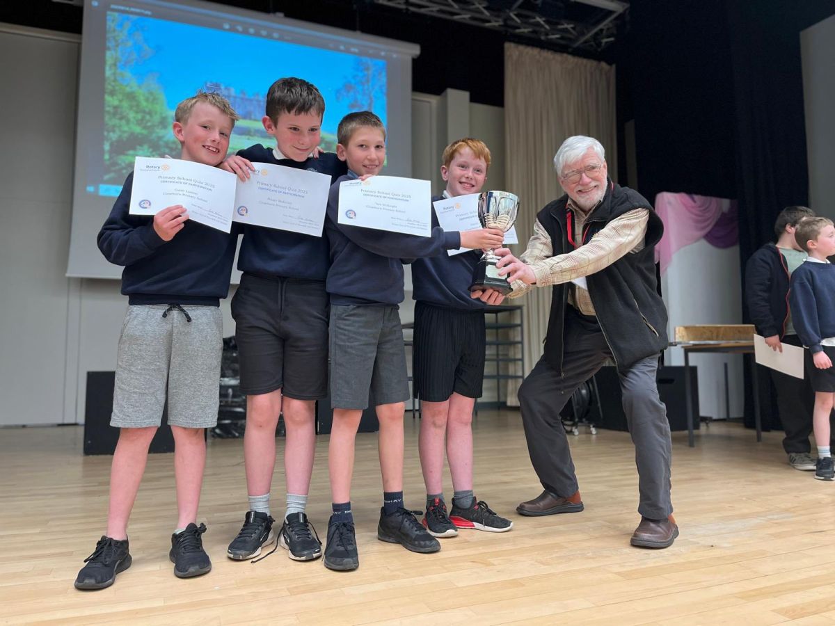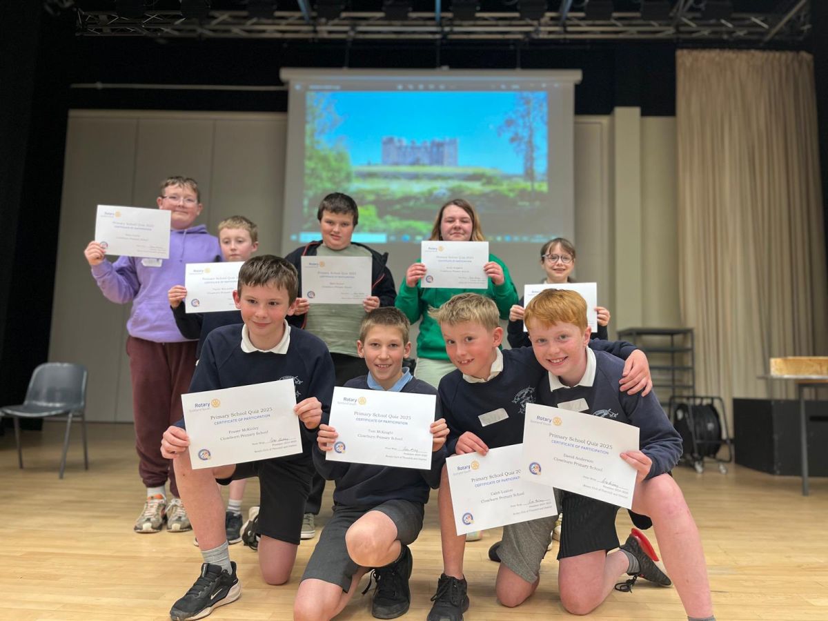 The Quiz is aimed at Primary 7 pupils who compete in teams of four. There are ten rounds of questions covering General Knowledge and a variety of other topics. The winners at Club level go forward to the District Final and this year proceed to a Scottish final.