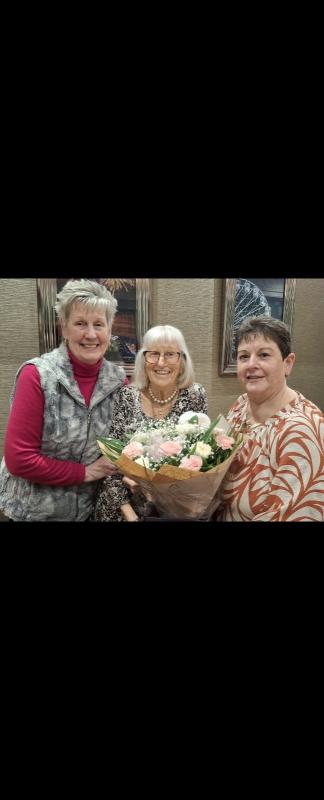 Speaker Diane Batey (c) being presented with a thank you bouquet by Treasurer,, Diane Glister & Blackpool Palatine President Sue Rooker.