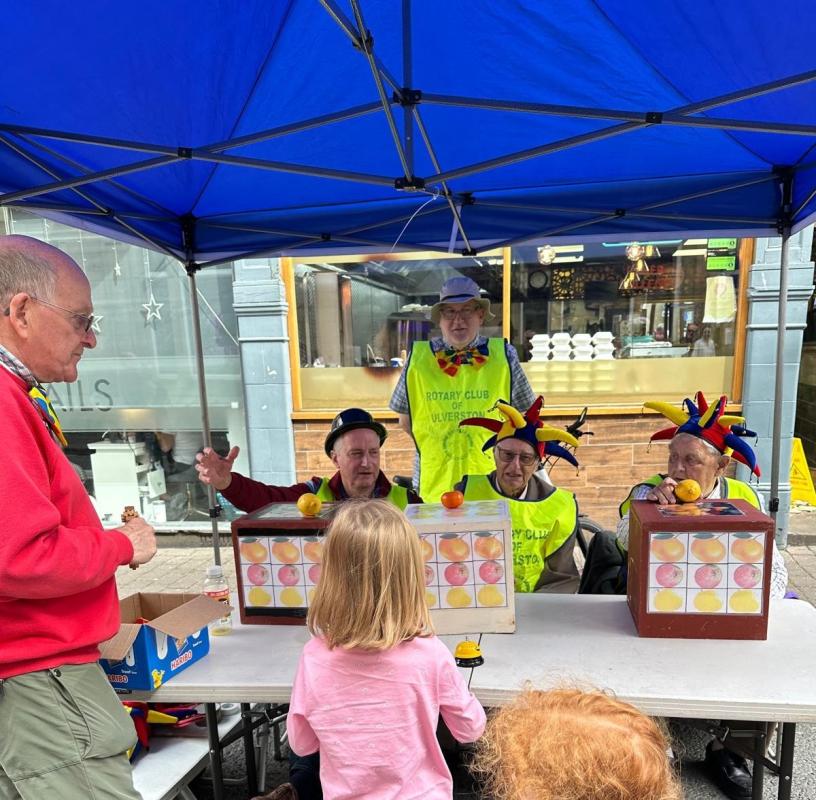 To date, they have been able to join their former club Furness Peninsula supporting marshalling at the Flookburgh Steam Gathering and are involved in the organisation of their September coffee and craft morning. They also helped Ulverston Rotary with their Human Fruit Machine at Ulverston festival.