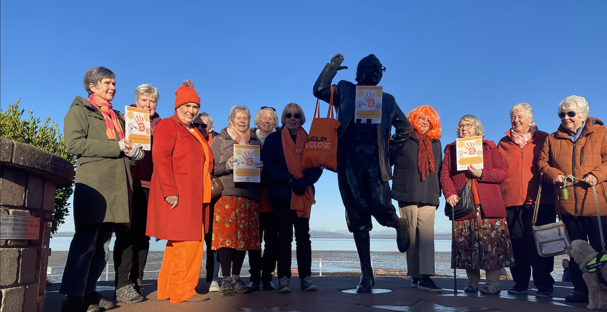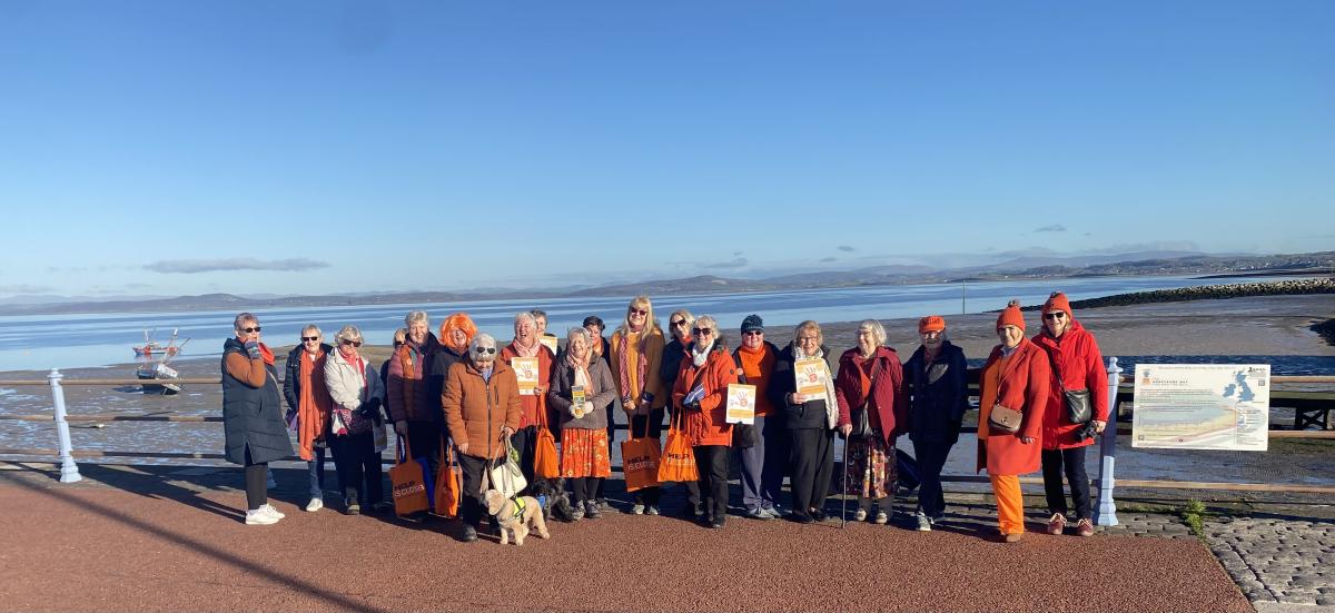 Kath & Linda, Carnforth Rotarians, joined Carnforth and Lancaster Inner Wheels and members of the Soroptimists in a walk to "Orange the World" highlighting violence against women and children across the world. We walked along Morecambe front wearing orange, handing out tangerines and leaflets to raise awareness of, and asking for an end to this abuse. Even Eric supported us.