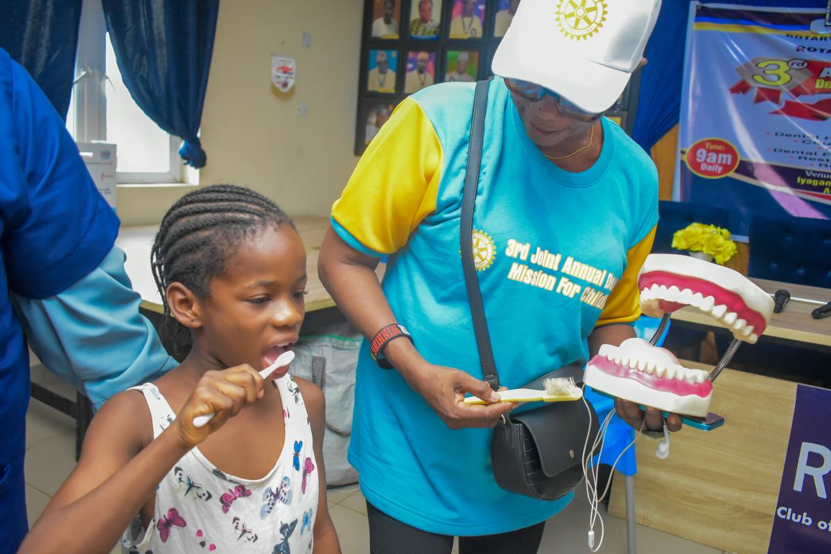 The 2022 Dental program of the Rotary Club of Iyaganku-Ibadan took place in December between Tuesday 26/12 and Wednesday 27/12 even though public enlightenment in religious places and community based organization and mobilization of the children spanned through Sunday to Monday before the main program.