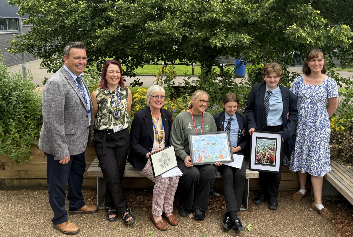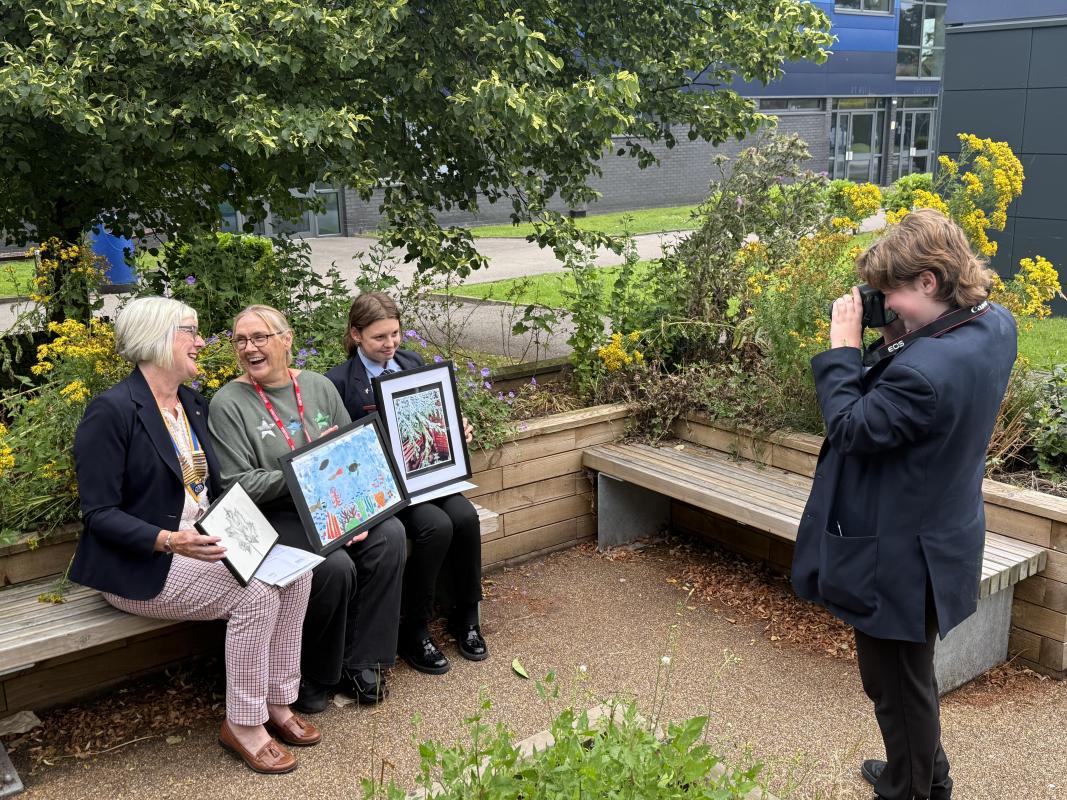 President Sue and other members of Leyland Rotary were warmly welcomed when they visited Lostock Hall Academy to present prizes and certificates to two pupils who had been successful in the Rotary Young Photographer and Rotary Young Artist competitions in Cumbria and Lancashire. The theme of the competitions was ‘Wonderful Water’.