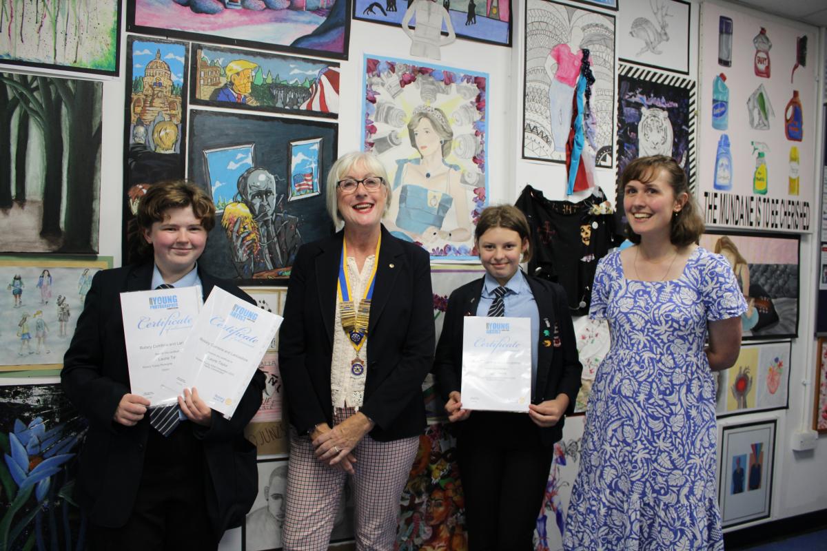 The staff at Lostock Hall Academy expressed their appreciation of the Rotary youth competitions and feel that the success of Laurie and Peggy will encourage more students to participate next year, not only in the Photographer and Artist categories but also in other Rotary competitions.