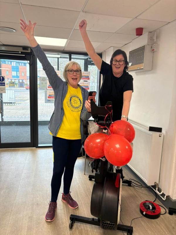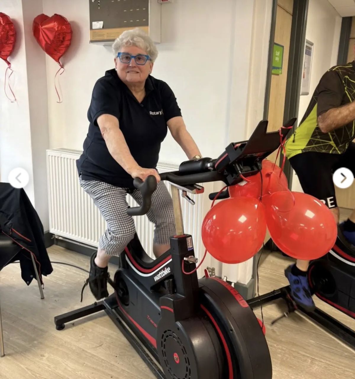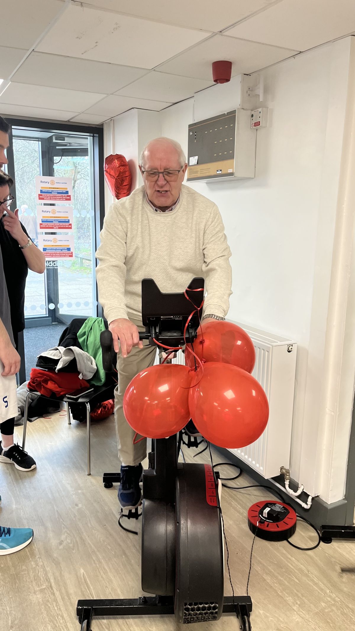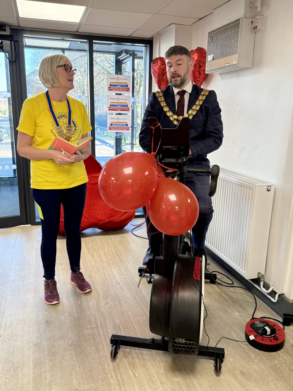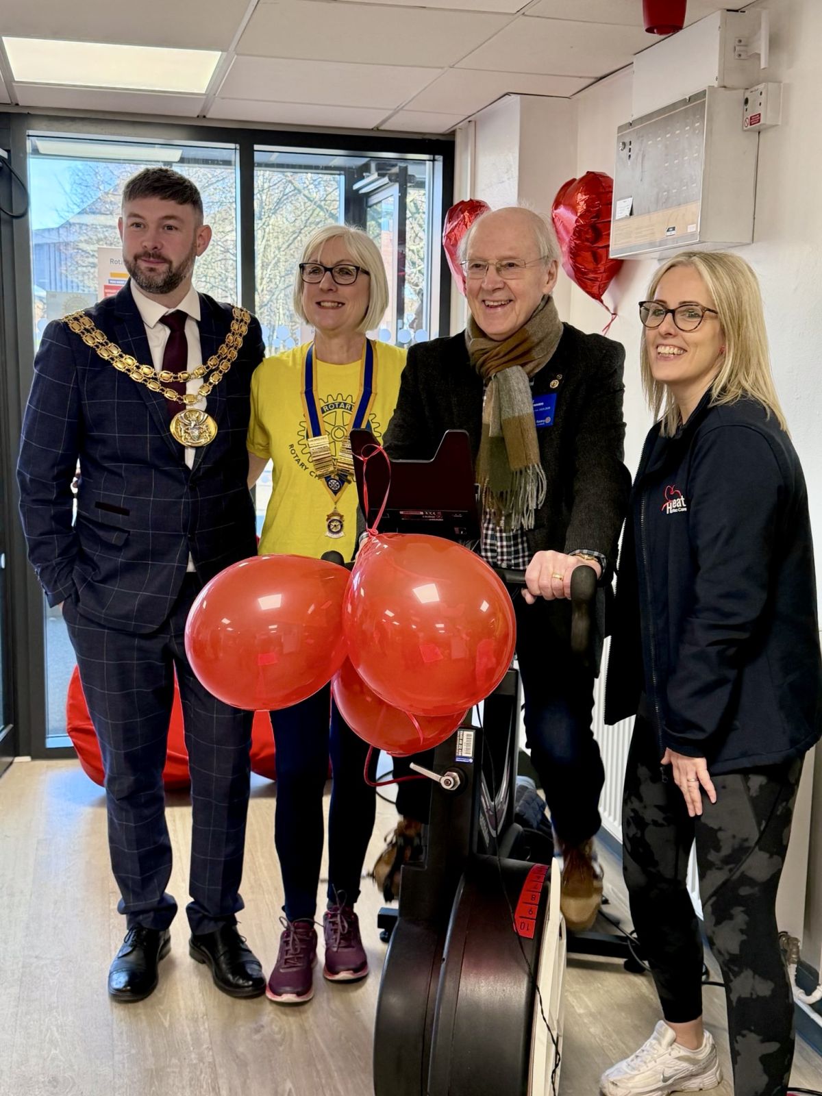The Mayor of South Ribble, Councillor Paul Wharton-Hardman BEM and Leyland Heartbeat user, Bob Fitchie, got the Cycle Challenge off to a flying start and were followed by another 19 riders, including Rotary's District Governor, John Edwards, who jumped on the bikes at Leyland Leisure Centre to help us raise vital funds for local charity Heartbeat NWCC.