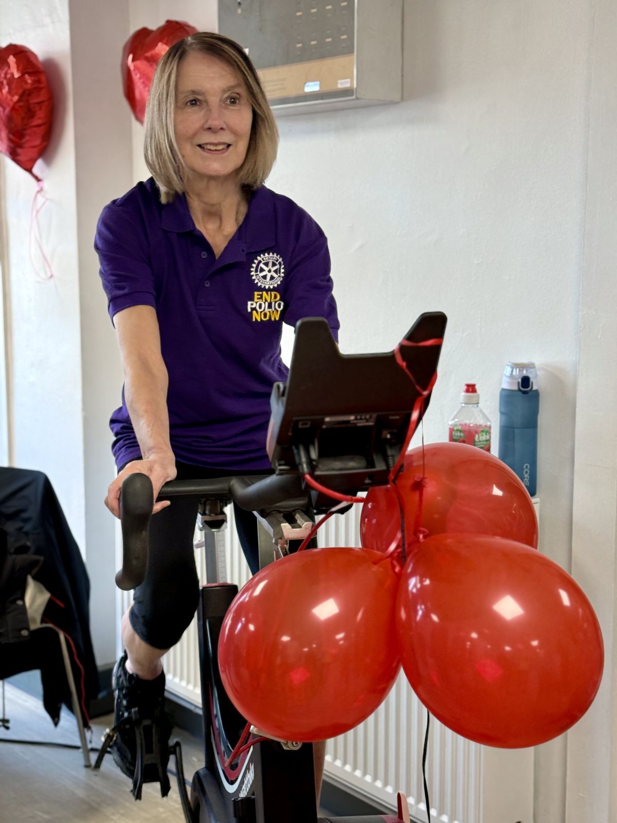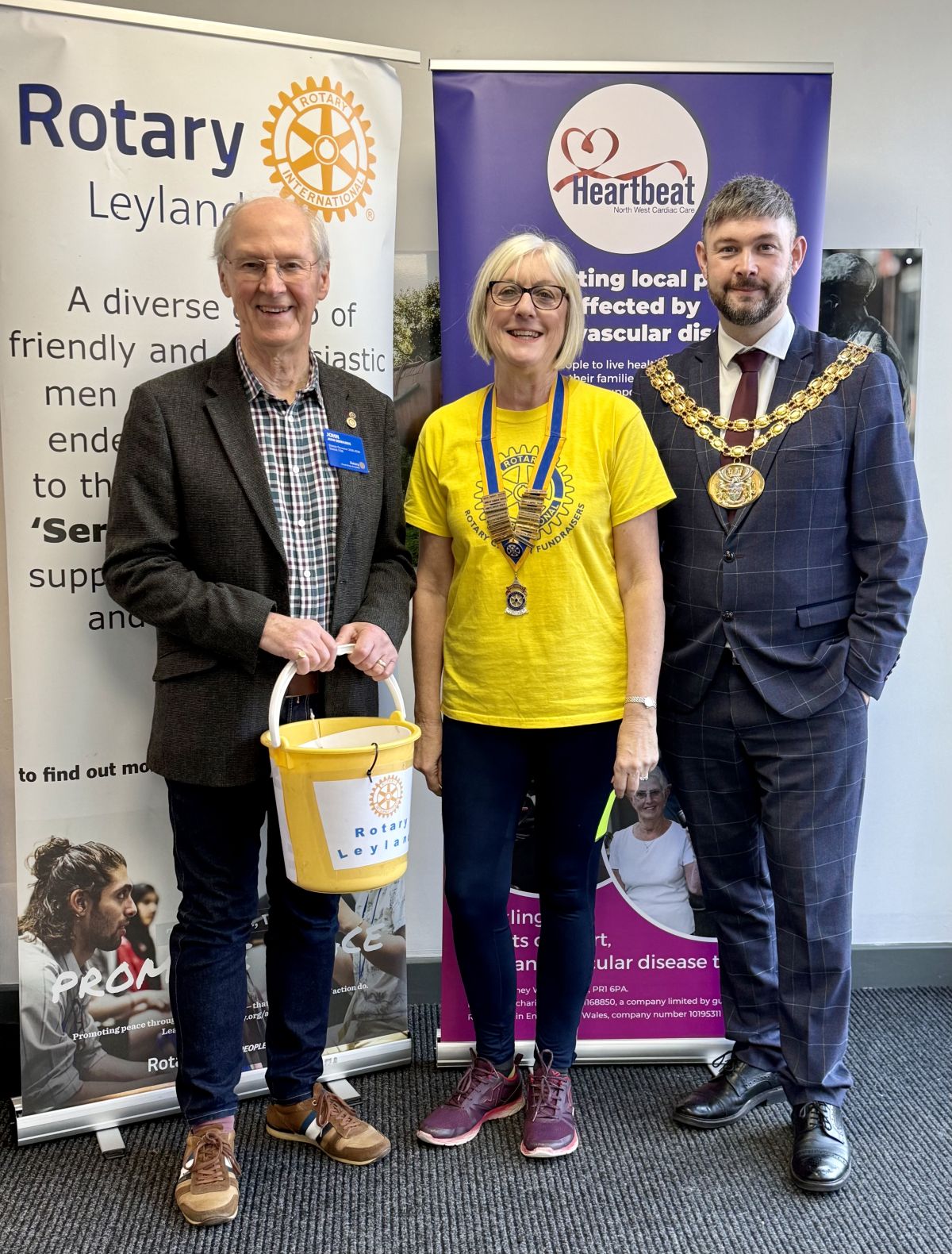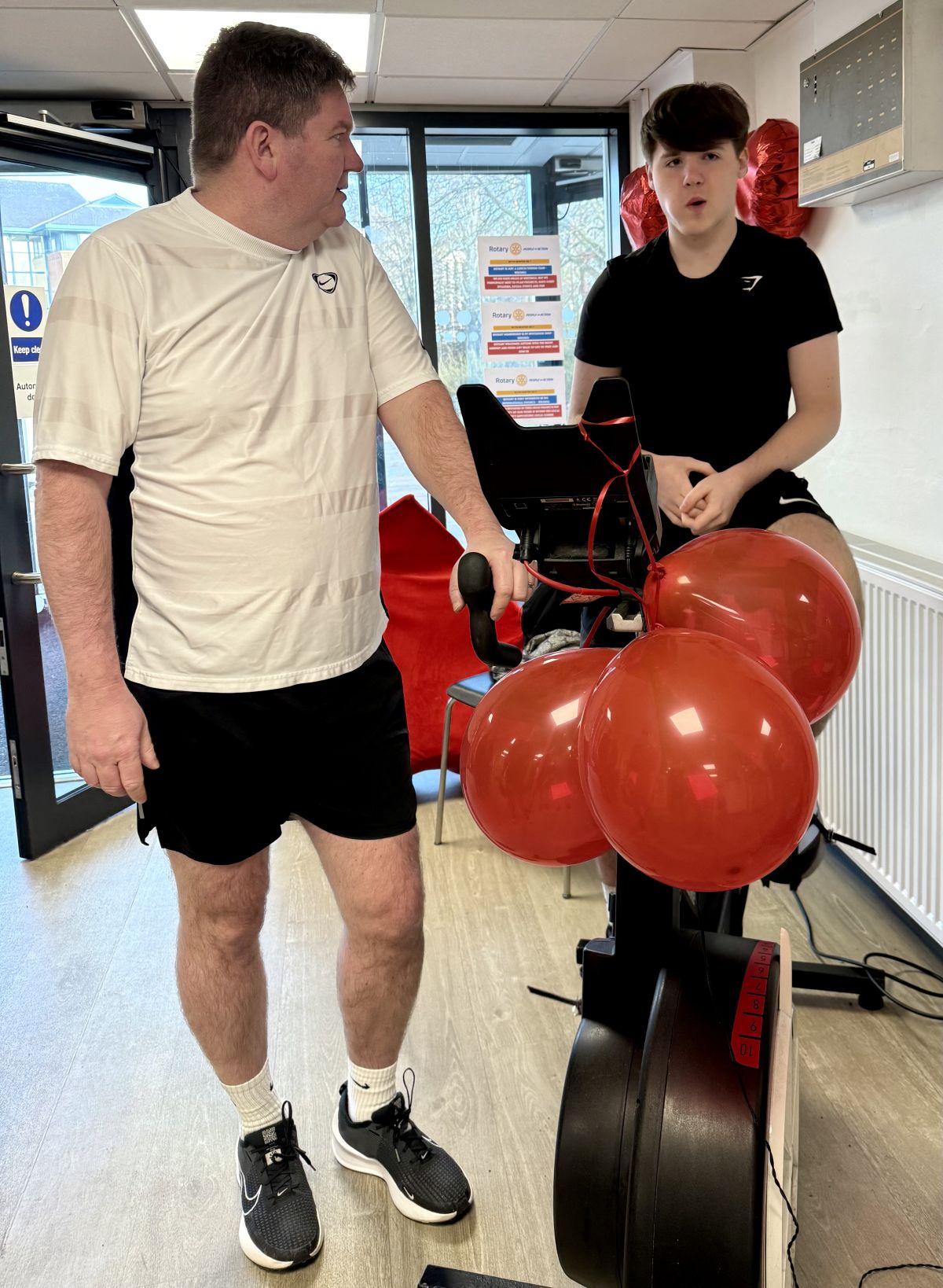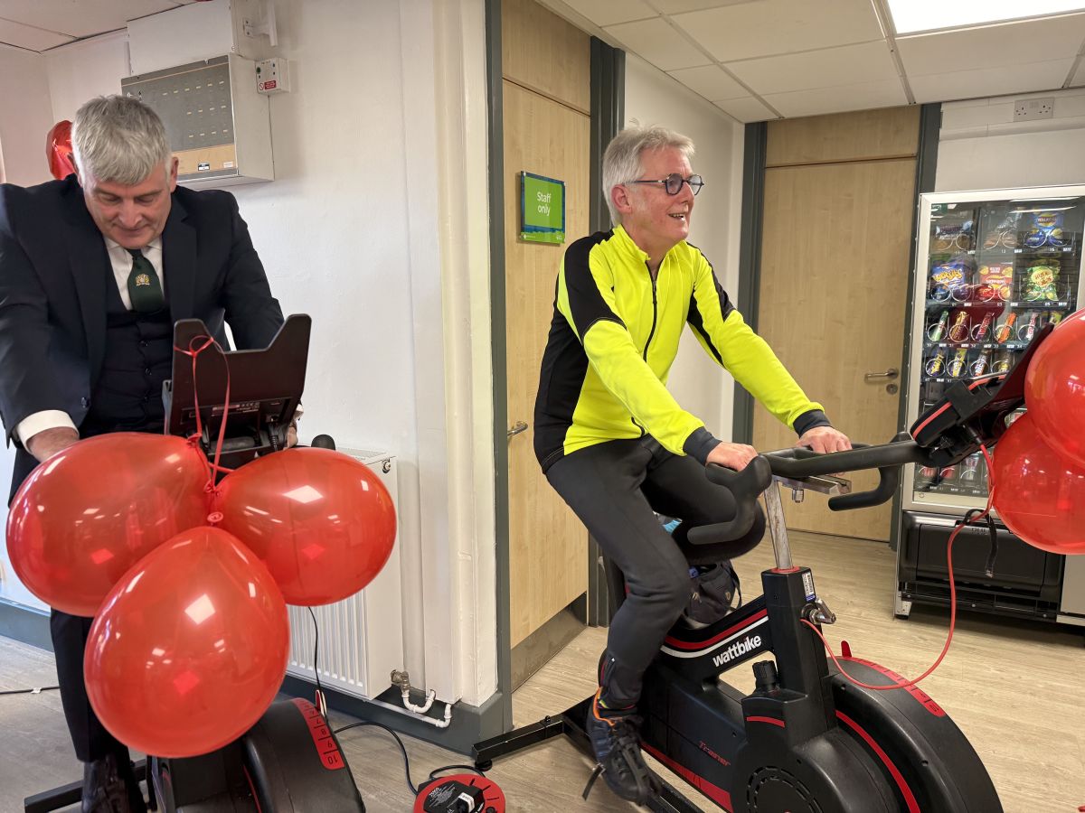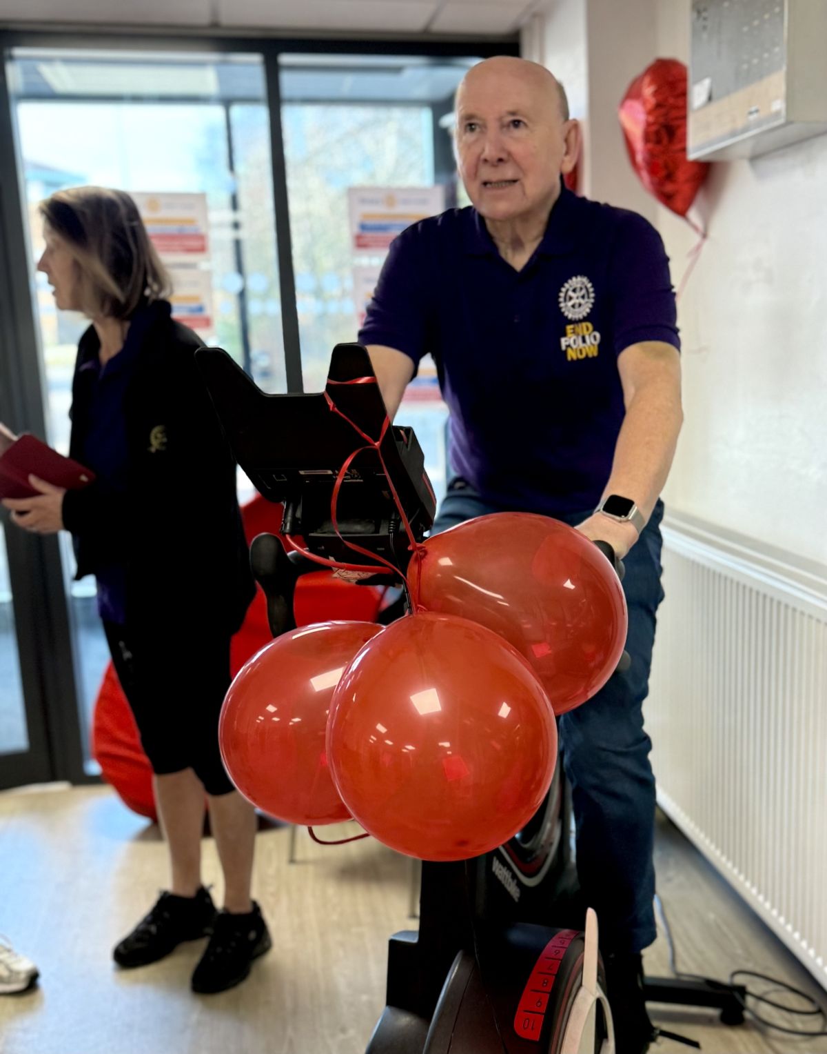 The Mayor of South Ribble, Councillor Paul Wharton-Hardman BEM and Leyland Heartbeat user, Bob Fitchie, got the Cycle Challenge off to a flying start and were followed by another 19 riders, including Rotary's District Governor, John Edwards, who jumped on the bikes at Leyland Leisure Centre to help us raise vital funds for local charity Heartbeat NWCC.