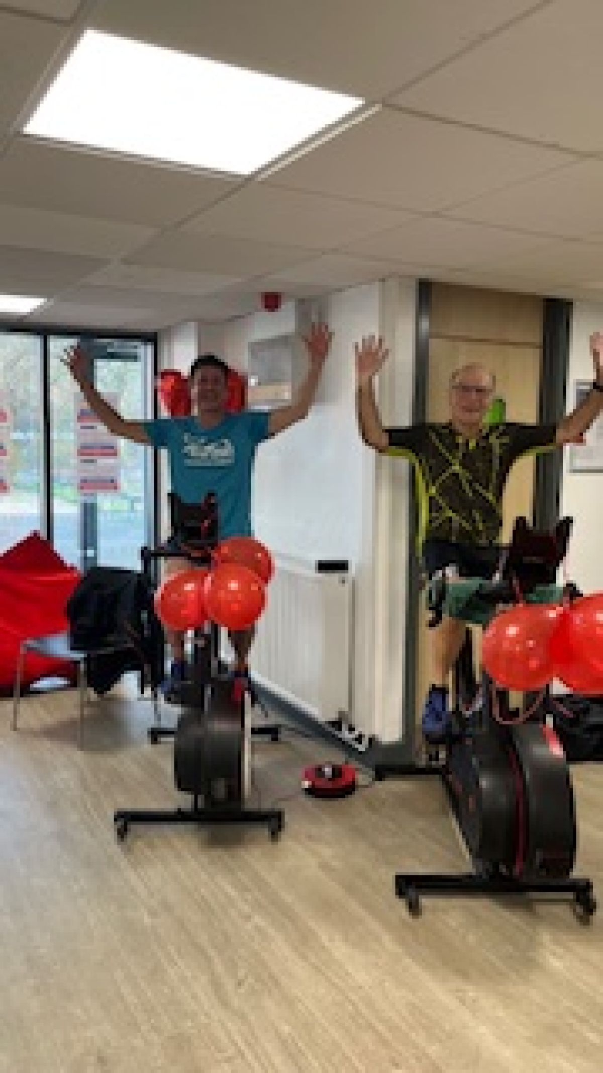 Thanks must go to Leyland Leisure Centre and Tesco Leyland for allowing us to run this event; to Jane from Friends of Leyland Station for selling raffle tickets on the day; and to all the riders who put so much effort into making sure we hit the 75 miles on both bikes. A special thanks must go to Dave Williams, who suffered a heart attack four years ago and used Heartbeat's services during his recovery and rehabilitation. Dave put in a massive three hours on one of the bikes and was on hand all day helping and encouraging everyone along the way.
