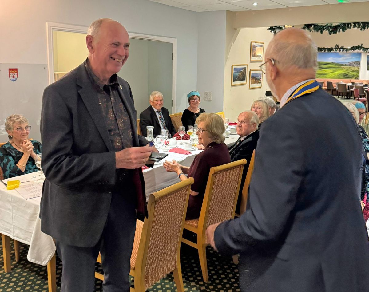 Club members, partners, the widows of ex-members and friends enjoyed a very pleasant evening at the Bridport and West Dorset Golf arranged by PE Tony Richars and other members of the Club Services Committee.