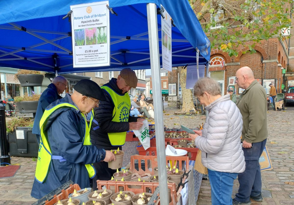 All of our members who were able, including two of our honorary members and our newest Friend of Rotary, played a part; ordering the bulbs, pots and compost, planting in September, tending them, promoting the sales and selling in November. A real team effort in the spirit of Rotary!