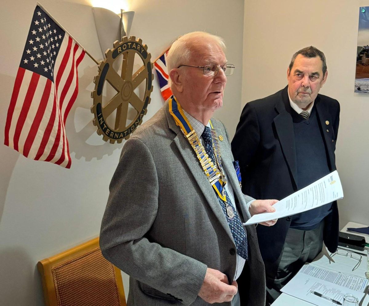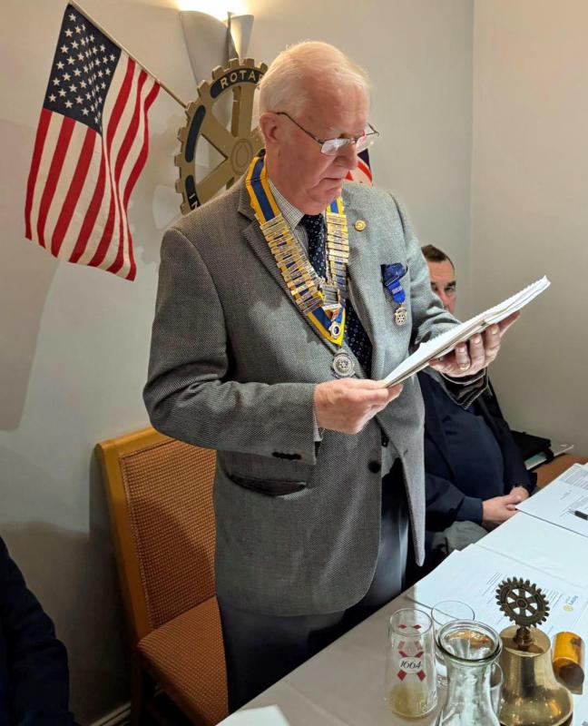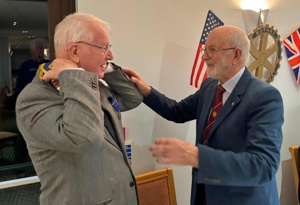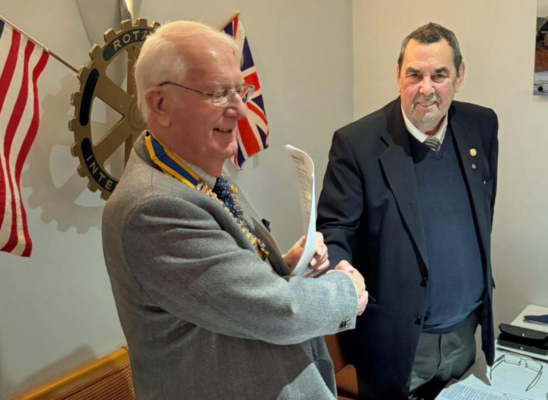 Halfway through the Rotary year and the outgoing President Bernard handed-over to the incoming President Malcolm, the third President of the four for this year.