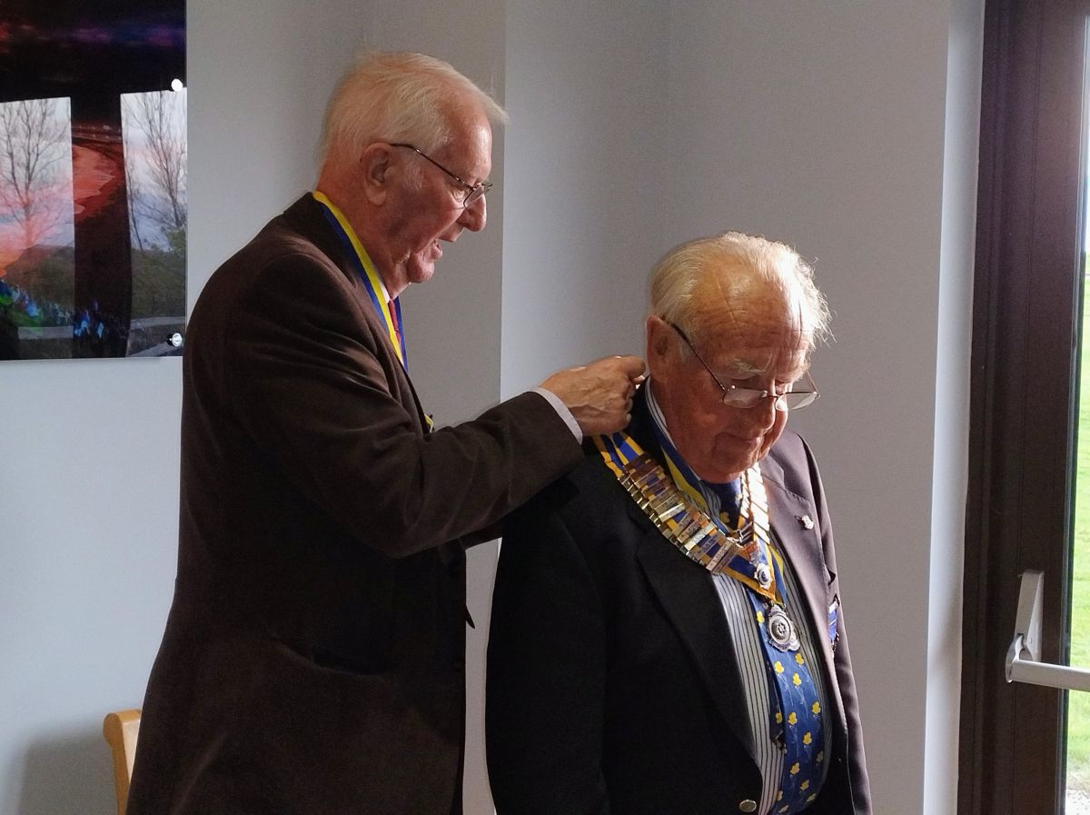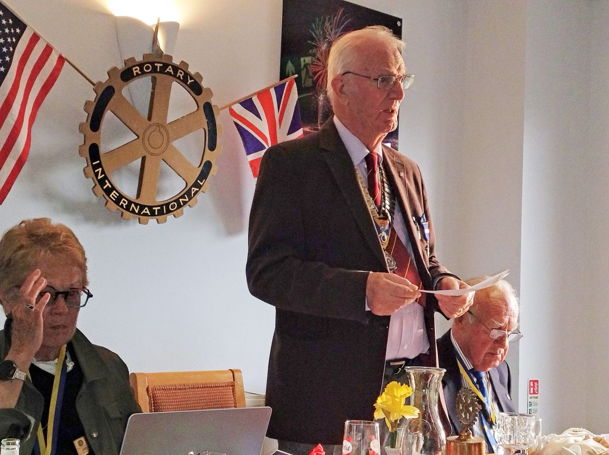Three quarters of the way through the Rotary year and the outgoing President Malcolm French handed-over to the incoming President Tony Williams, the fourth and final President of four for this year..