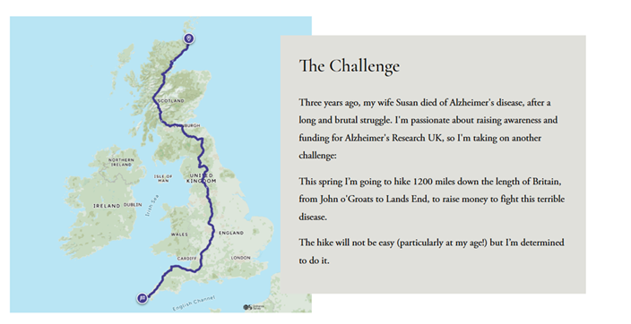 Has raised over £70K for Alzheimer’s Research UK on his sponsored walks