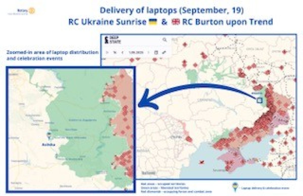Burton Rotary Club provided funds for eight laptops which were delivered today to children in the village of Asiivka, located in the Balakliya community of the Kharkiv region.