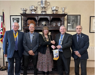 President Mike was invited to the Mayor’s Parlour and was accompanied by President Elect Andrew and Sergeant at Arms Martyn .The Worshipful Mayor of the Borough of North East Lincolnshire presented a club banner from Grimsby Rotary Ontario to President Mike.