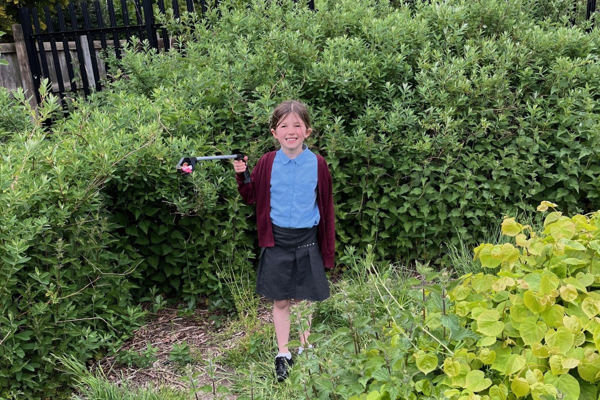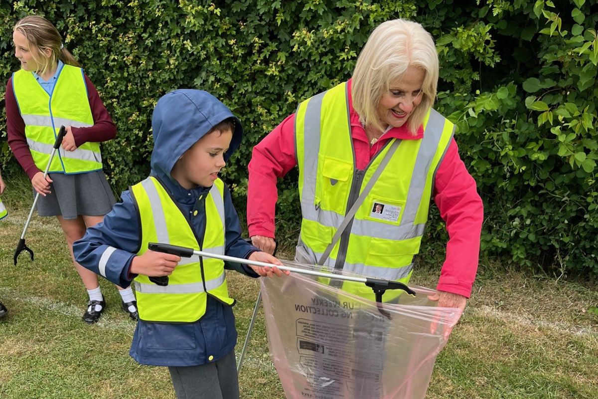 Armed with litter-pickers and hi-viz vests we split into two groups. Patrick and I were with one group who went around the edge of the Junior playground. It was generally very tidy, but the eagle-eyed children found the smallest pieces of litter.