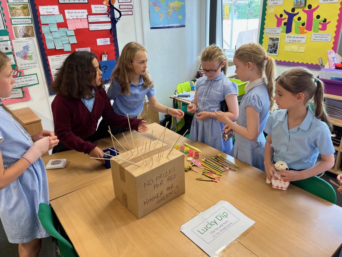 The children take part in an Enterprise Morning where they have a £5 initial budget which they can utilise to generate a profit. In each class, children then create their own games and activities that will raise money towards their class total. Old favourites like cup pong and “What’s in the Box?” were back, but the influence of Luke Littler has taken hold—there were plenty of darts variations to try.