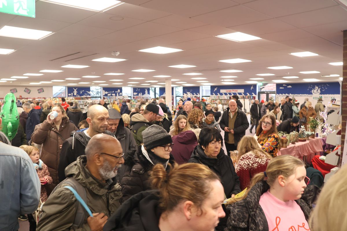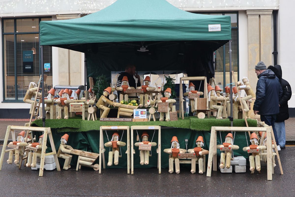 Stephen reports, “My first impression on walking down the High Street before the official opening was how successful the market was in terms of the number of stalls. Stalls were so densely packed that it was difficult to find a space to move from the pavement to the centre of the road. In the craft area outside and inside the library every space was occupied by sellers of jewellery, Christmas bon-bons and knick-knacks”.