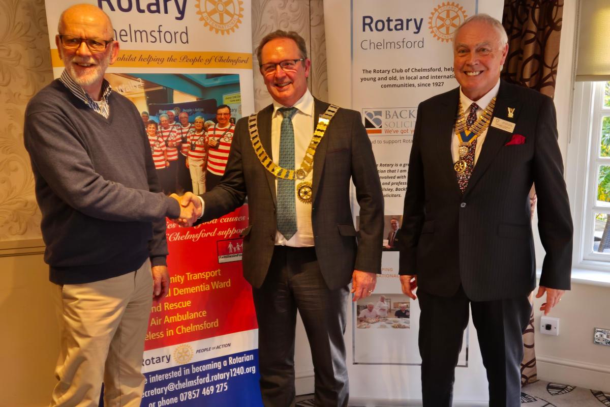New member Warwick Aldham, DG Mark Williamson and President Graham