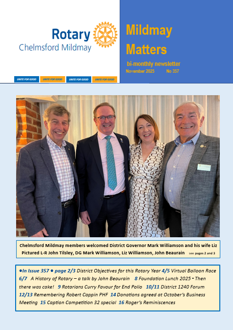 more This supplement shows a variety of articles from the first 50 years of the Rotary Club of Chelmsford Mildmay, 1972-2022.