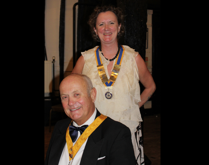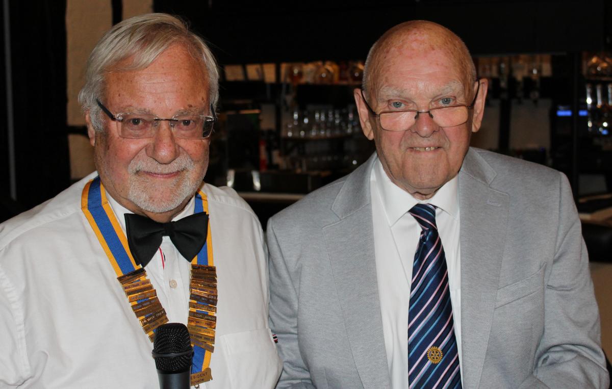 At the event, Dick Amott was presented with a Paul Harris Award, featuring a single purple stone jewel, for his long service to Rotary. He is pictured with Barry Clark.