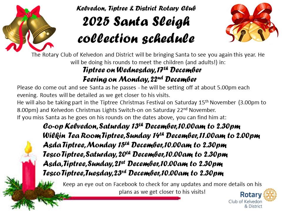 These are the dates that you can see the Rotary Santa Sleigh during the 2025 Christmas season.